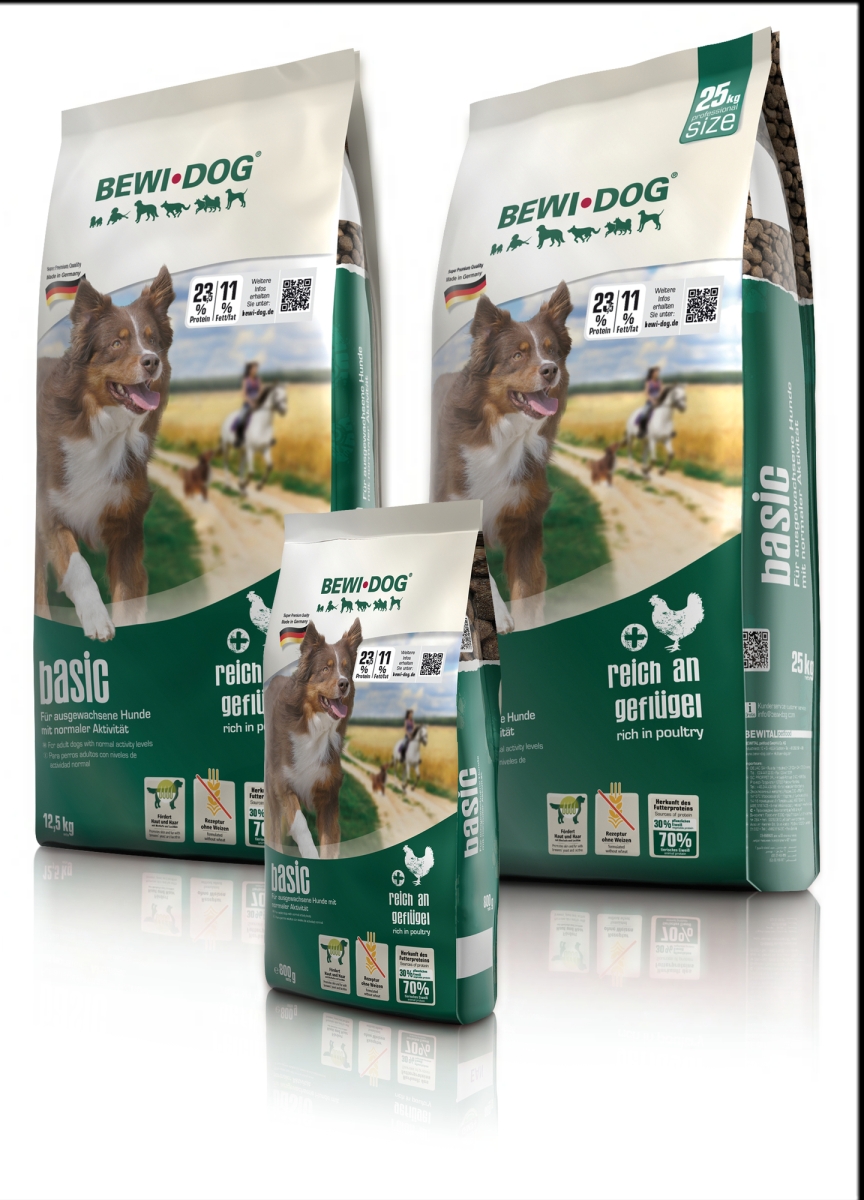 BEWI DOG® basic zeichnet sich durch einen moderaten Eiweiß- und Fettgehalt aus und ist speziell auf den Nährstoffbedarf von Hunden dieser Leistungsklasse abgestimmt. BEWI DOG® basic versorgt Ihren Hund mit allen notwendigen Nährstoffen. Der einzigartige BEWI DOG® Vitalkomplex liefert Ihrem Hund eine sinnvolle Nährstoffergänzung, die weit über ein gewöhnliches Futter hinausgeht. Lecithin, Bierhefe, hochgesättigte Fettsäuren und spezielle Vitamine sichern die Gesundheit und Aktivität bis ins hohe Alter. Die erstklassigen Fleischprodukte und eine gezielte Kombination spezifischer Pflanzenfasern sind besonders schmackhaft und sorgen für eine optimale Verwertung des Futters. Außerdem regulieren sie die Darmflora und reduzieren den Kotabsatz.