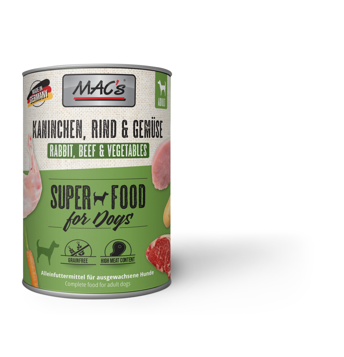 Verwöhne deinen Vierbeiner mit MAC’s Kaninchen, Rind & Gemüse – einer geschmackvollen Mischung aus hochwertigem Fleisch, gesunden Karotten und Kartoffeln. Die ausgewogene Rezeptur liefert wertvolle Proteine und wichtige Nährstoffe für Energie, Vitalität und ein glückliches Hundeleben. Natürlich getreidefrei und ohne unnötige Zusätze – weil dein Liebling nur das Beste verdient!